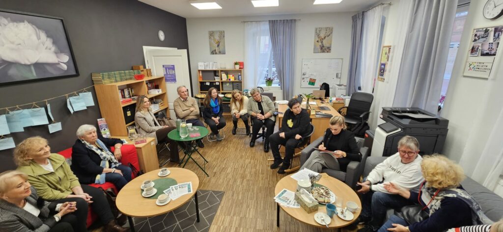 Inkubator Inicjatyw Społecznych Łaska 38 przywitała nas pozytywną energią, uśmiechem i wielkim sercem! Było to wspólne spotkanie przedstawicielek/-li JST i NGO z Miasta Puszczykowa i okolic (Powiat Poznański / Metropolia Poznań) i Zduńskiej Woli. Oficjalnie w imieniu Prezydenta Zduńskiej Woli powitała nas Agnieszka Sokal, dyrektorka Wydziału Promocji, pięknie przybliżając kluczowe działania Miasta, które świętuje swoje 200-lecie! Czerwonym dywanem (tzn. kanapami!), aromatyczną kawą i kanapeczkami oraz inspirującymi opowieściami o aktywności Inkubatora i wartymi upowszechnienia praktykami zaczarowały nas koordynatorki: Beata Zwierzyńska, Renata Walocha oraz wspierające je Pani Agnieszka.